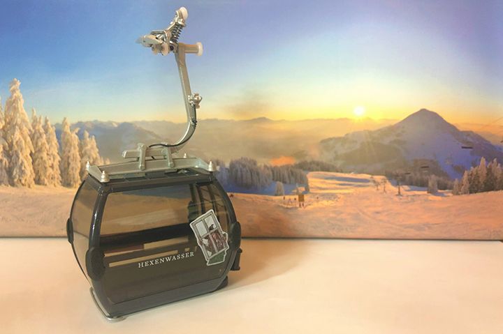 The SkiWelt Hexenwasserbahn miniature gondola from the Jägerndorfer company is a suitable gift for any SkiWelt fan. The design is the same as the original SkiWelt Hexenwasserbahn in the SkiWelt SÖLL with witch window.